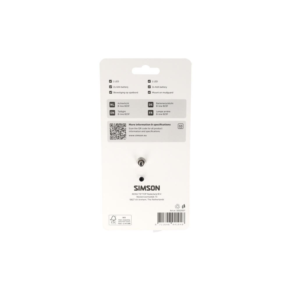 Simson, Achterlicht, Simson, aurora, b-line, B23F, spatbord, inclusief, 2, AAA, batterij,