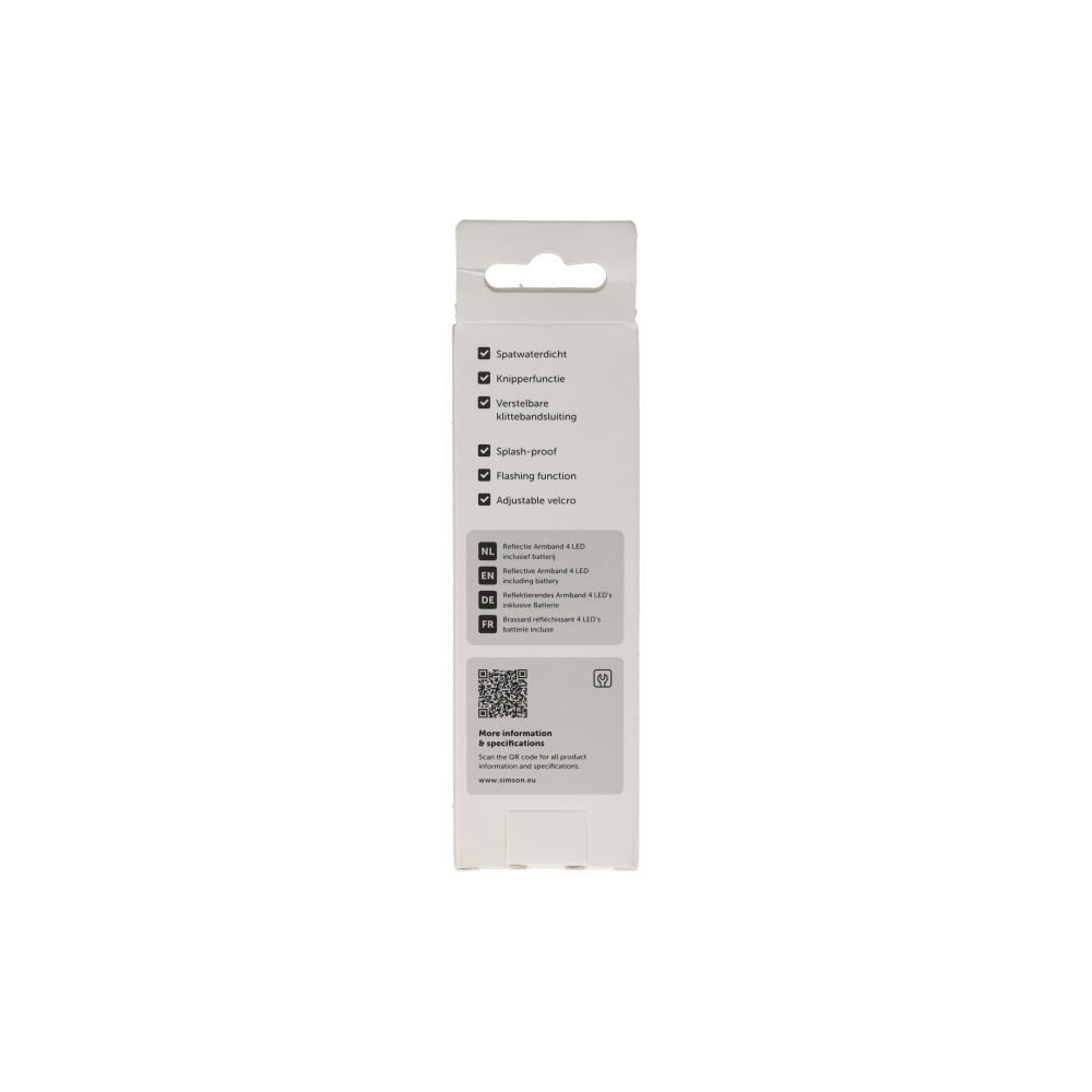 Zichtbaarheid voor de actieve sporter. Deze spatwaterdichte armband met 4 heldere LED's zorgt dat je opvalt tijdens het fietsen of hardlopen. Voorzien van zowel een knipper- als een standlichtfunctie. Dankzij het elastiek en de klittenbandsluiting past hij altijd om je arm of enkel.
