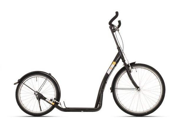 AUTOPED step met 20'' wielen met rubberen banden. Voor- en achterrem, chromen spatborden en vlinderstuur met zachte omhulzing. Stuur in hoogte verstelbaar. Zwart.