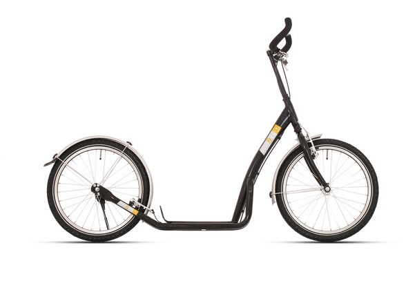 AUTOPED step met 20'' wielen met rubberen banden. Voor- en achterrem, chromen spatborden en vlinderstuur met zachte omhulzing. Stuur in hoogte verstelbaar. Zwart.