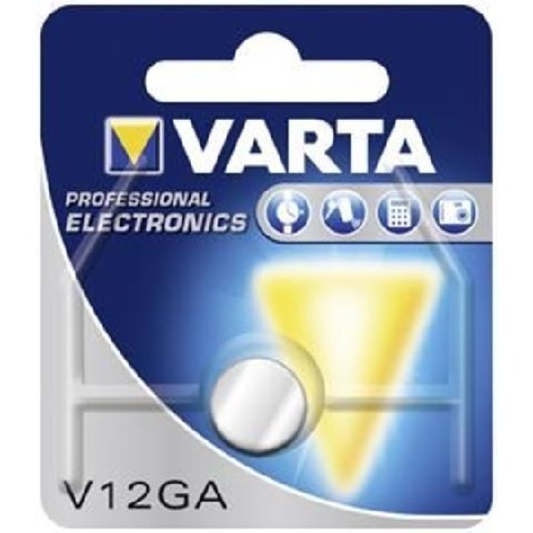 Varta V12GA of LR43 Alkaline knoopcel (67mAh, 1,5V). 11,6mm diameter. 4,2mm dik. Geschikt voor rekenmachines en ander electronisch apparatuur. LET OP: Gebruik voor een horloge nooit een alkaline batterij