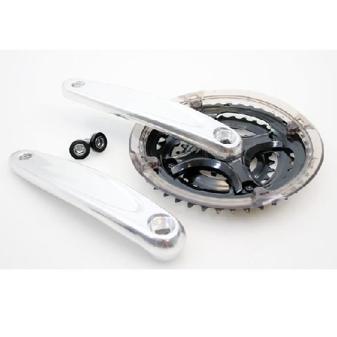 Lasco aluminium crankstel. 3 versnellings: 24-34-42 tands. Met beschermingsrand, kleur zilver