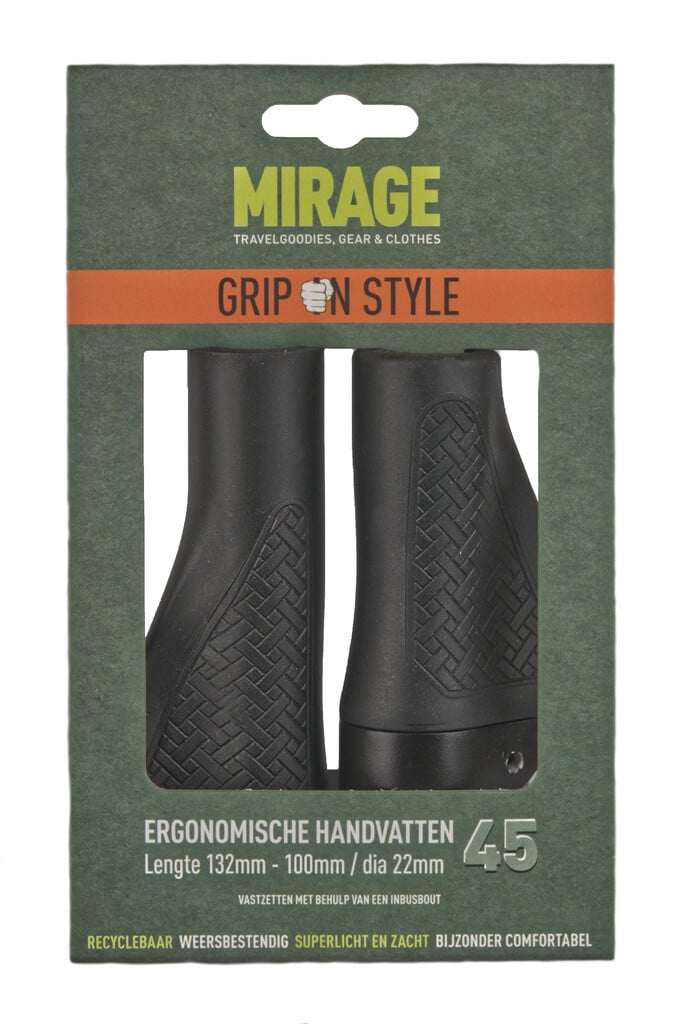 Mirage handvatten zijn gemaakt van een harde kunststof (PP) in combinatie met een zacht en comfortabel rubber (TPR), die dankzij de aluminium klem stevig aan het stuur bevestigd kan worden. Ook in natte en koude condities behouden deze handvatten hun comfortabele grip.