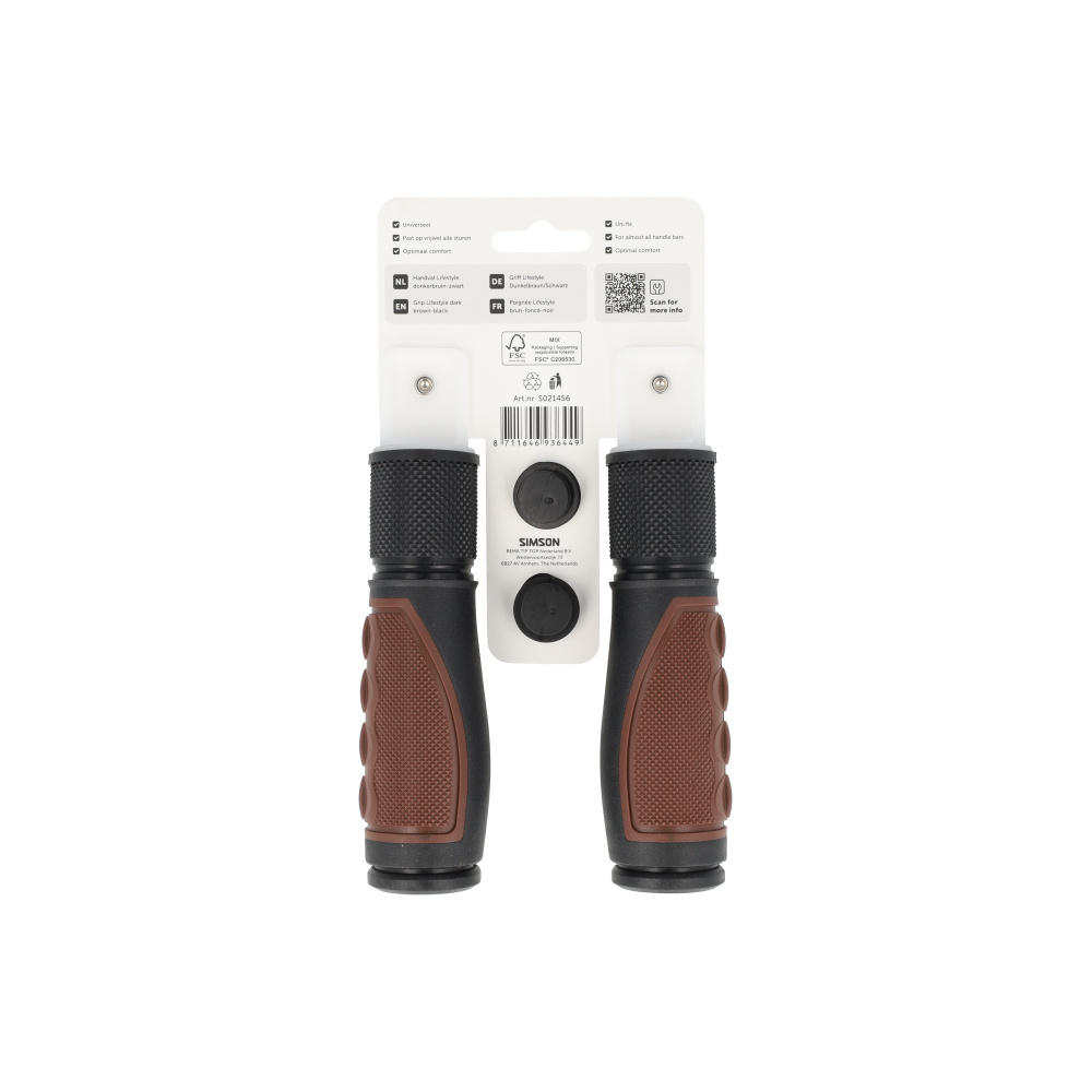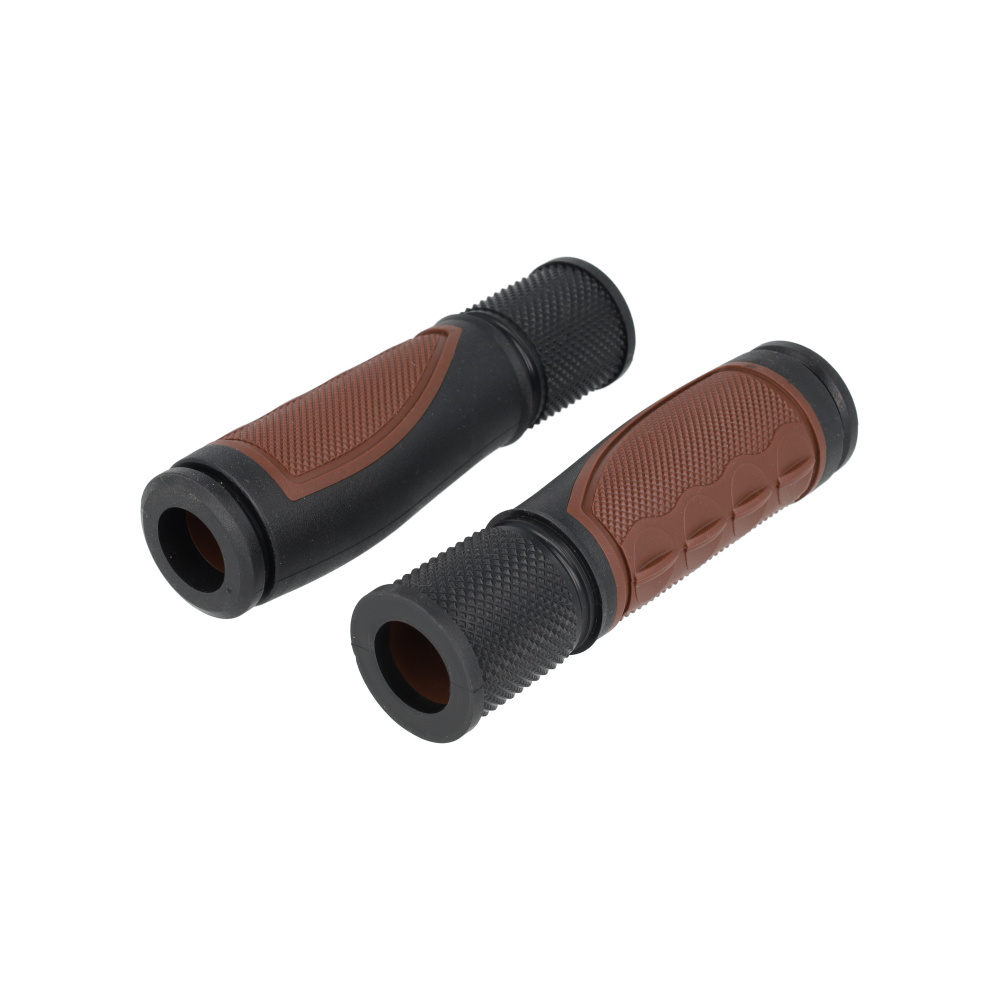 Dezelfde vertrouwde kwaliteit als de middenbruine variant, maar in een diepere donkerbruine tint. Deze handvatten bieden een uitstekende grip en voelen dankzij de zachte vulling zeer comfortabel aan tijdens lange ritten. Geschikt voor vrijwel alle standaard sturen en aanpasbaar voor draaiversnellingen.
