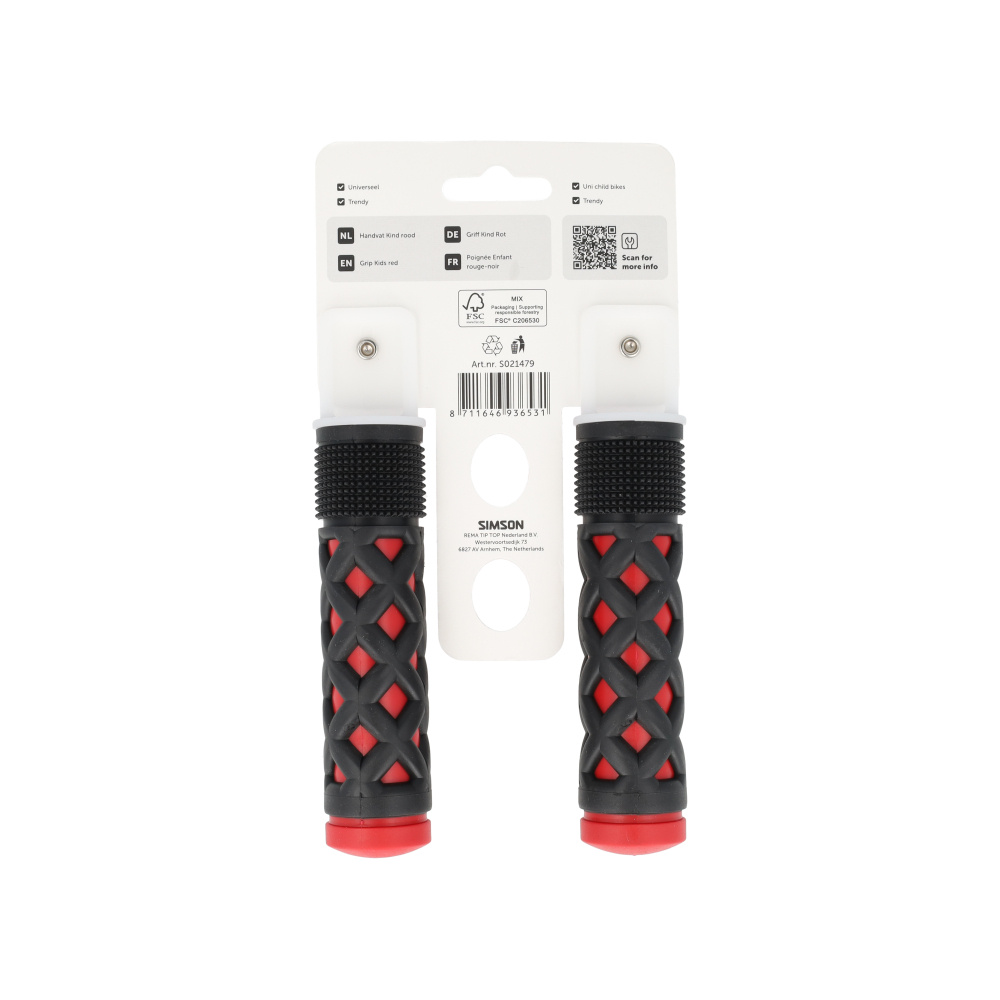 Sportieve look voor kinderfietsen. Geef de fiets een sportieve boost met deze rood-zwarte handvatten. Het speciale ruitmotief zorgt voor maximale controle over het stuur. Net als de andere kinderhandvatten zijn deze eenvoudig over het stuur te schuiven en desgewenst in te korten op de gewenste lengte.