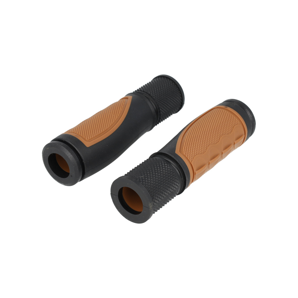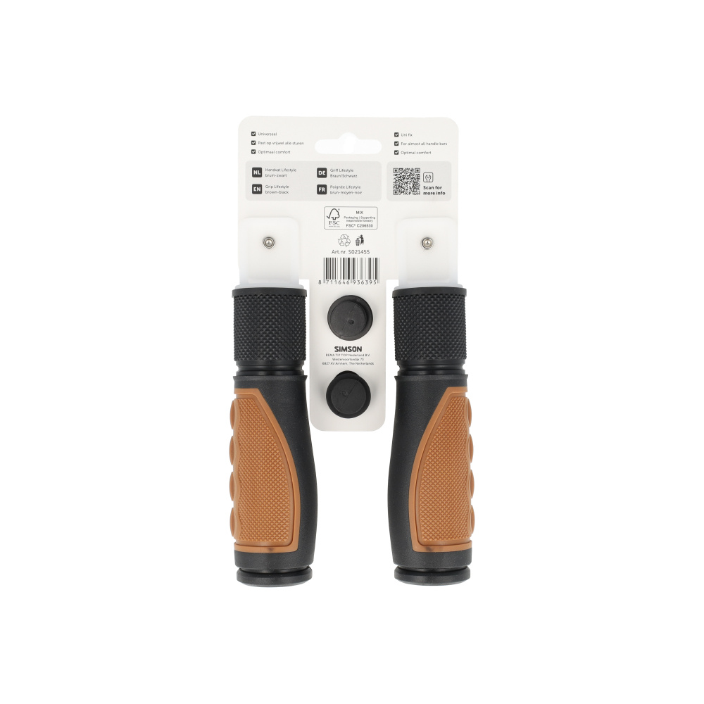 Deze trendy tweekleurige handvatten geven elke lifestyle- of stadsfiets een elegante upgrade. De binnenzijde is voorzien van een zachte voering voor optimale schokabsorptie. Uniek: de handvatten zijn eenvoudig in te korten tot 92 mm via de snijlijn, waardoor ze ook perfect passen op fietsen met een gripshift-versnelling.