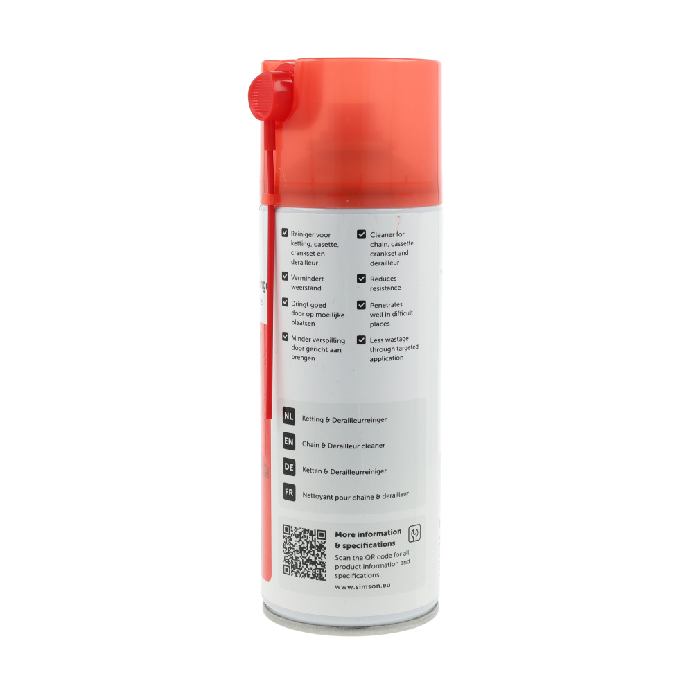 Grondige reiniging van je aandrijving. Deze krachtige spray verwijdert moeiteloos oud vet, olie en hardnekkig vuil van kettingen en tandwielen. Inclusief precisierietje om ook de moeilijk bereikbare plekken van de derailleur schoon te spuiten.