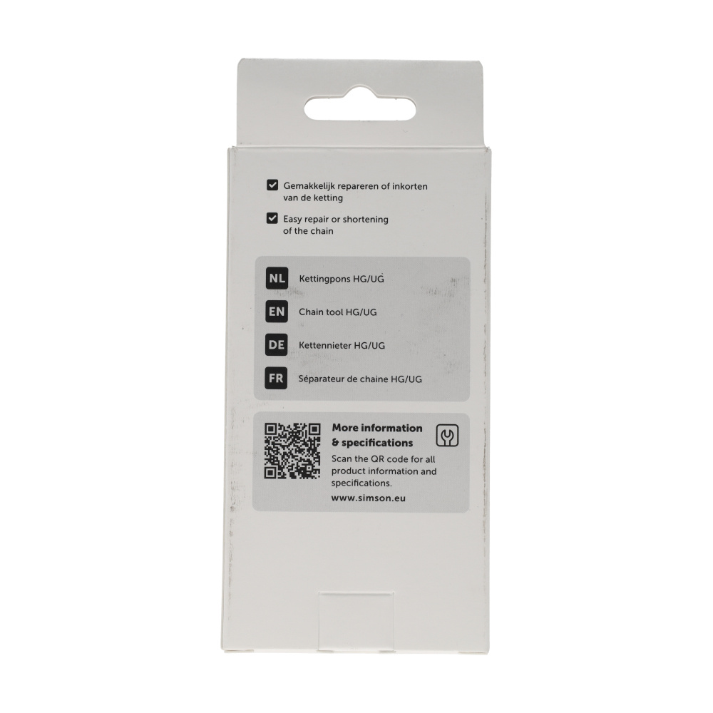 Kort je ketting vakkundig in. Deze kettingpons is specifiek ontwikkeld voor Hyperglide (HG) en Uniglide (UG) kettingen. Druk eenvoudig de pen uit een schakel om de ketting op de juiste lengte te maken of om een beschadigde schakel te verwijderen.