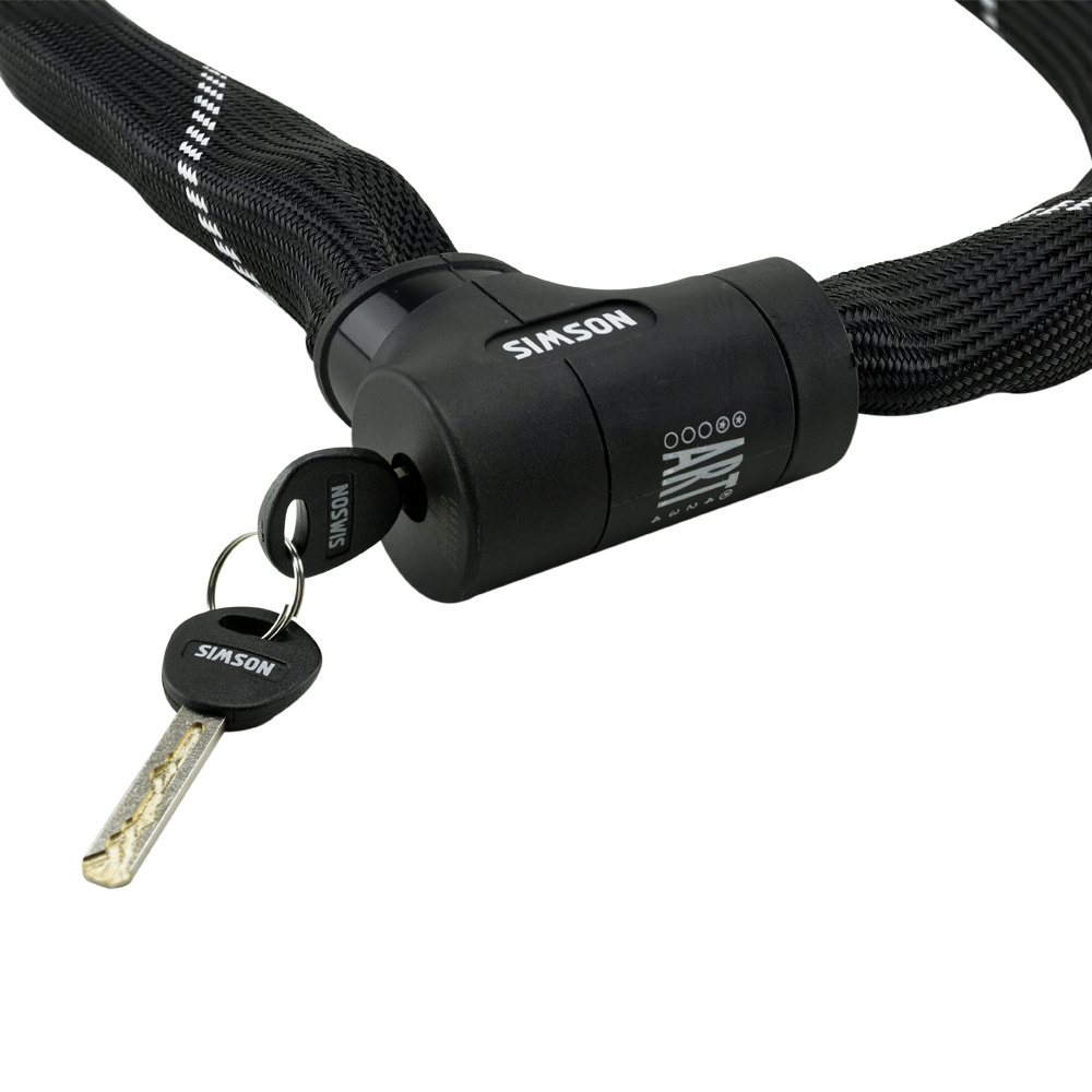Bescherm uw waardevolle fiets, e-bike of bakfiets met het stevige ART 2 gekeurde Simson fietskettingslot. Het Simson kettingslot Bold 120, die voldoet aan strenge diefstalpreventienormen, is gemaakt van hoogwaardig materiaal en uitgerust met een betrouwbare sluiting voor een zeer goede beveiliging. Ons ART 2 kettingslot is niet alleen een investering in de beveiliging van uw fiets, maar ook in zekerheid dat uw fiets vast blijft staan aan bijvoorbeeld het fietsenrek. De ART 2 kettingsloten van Simson voldoen aan de vereisten van de verzekering. Het Simson kettingslot Bold 120 is extra lang speciaal voor het beveiligen van bakfietsen. Zet je fiets goed op slot en kies voor kwaliteit en een compromisloze bescherming.