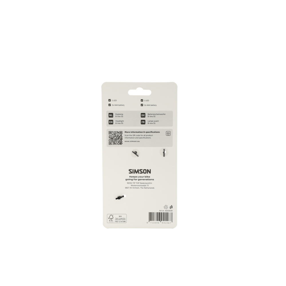 Simson, Koplamp, Simson, aurora, b-line, 5S, 1, led, inclusief, 2, AAA, batterij,