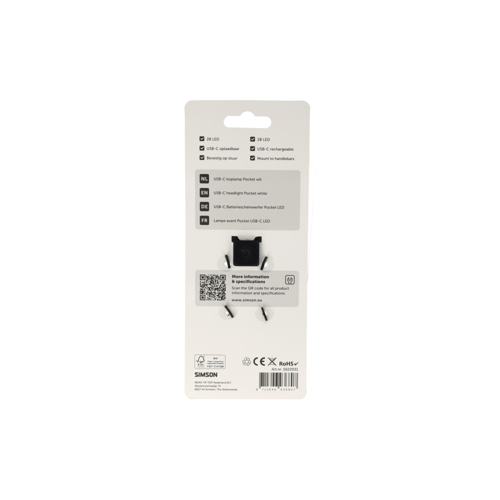 Simson, Koplamp, Simson, Pocket, wit, led, usb-c, oplaadbaar, voorlamp,