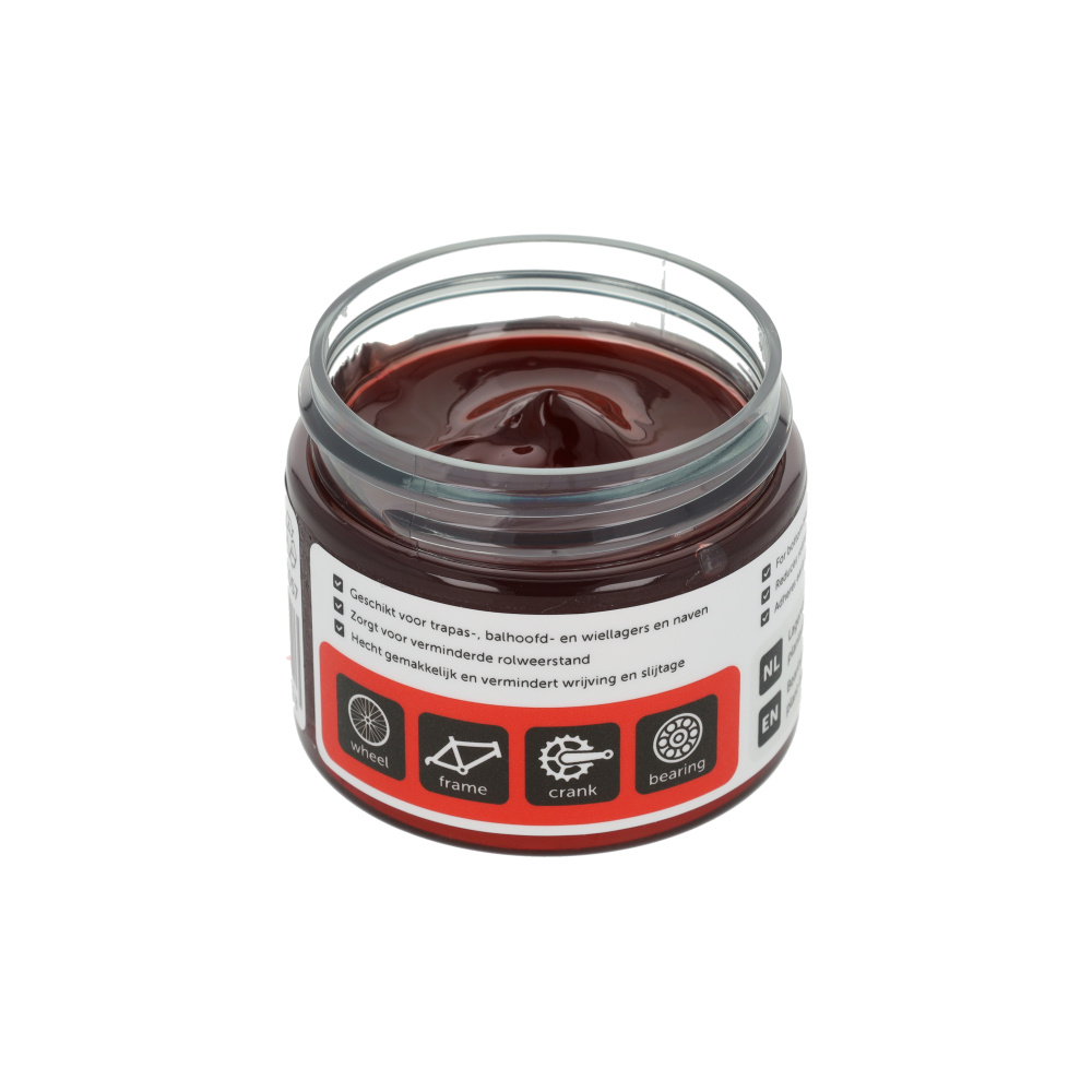 Hoogwaardig vet voor draaiende delen. Dit sterke, plantaardige vet is ontwikkeld voor zwaarbelaste onderdelen zoals trapassen en naven. Het biedt een uitstekende weerstand tegen water en hoge druk, voorkomt roestvorming en garandeert een soepele loop van je lagers.