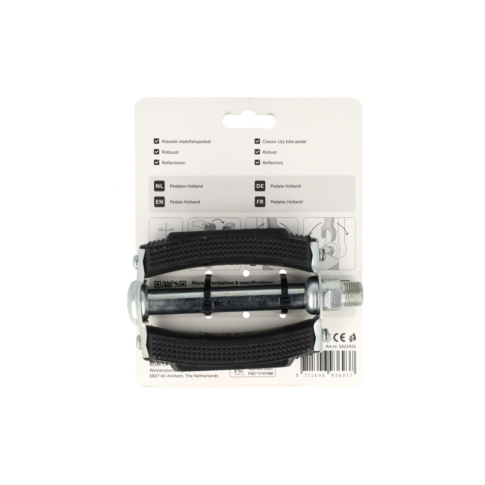 Oerdegelijke Hollandse kwaliteit. Deze klassieke pedalen zijn de standaard voor elke stadsfiets of omafiets. De combinatie van een robuust stalen frame en stroef zwart PVC biedt maximale grip onder alle weersomstandigheden. Voorzien van soepel draaiende 9/16" kogellagers en geïntegreerde reflectoren voor extra veiligheid in het verkeer.