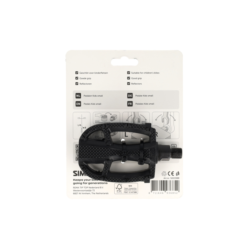 Veilig op weg voor de allerkleinsten. Deze compacte kinderpedalen zijn perfect afgestemd op kleine voeten. De soepele lagering zorgt ervoor dat kinderen de pedalen makkelijk in beweging krijgen. Voorzien van een antislip-profiel voor grip met gladde zolen en reflectoren aan beide zijden. Let op: Deze pedalen hebben een 1/2" draad, specifiek voor eendelige cranks die vaak op kinderfietsen voorkomen.