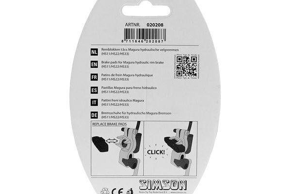 Deze Simson Remblokken voor Magura hydraulische velgrem zijn geschikt voor het type HS33/HS11 remsysteem. Klik de ouderemblokken uit de houder en klik vervolgens de nieuwe er weer in. De remblokken zijn geschikt voor zowel voor- als achterrem.De Simson Remblokken voor Magura worden geleverd per 2 stuks.