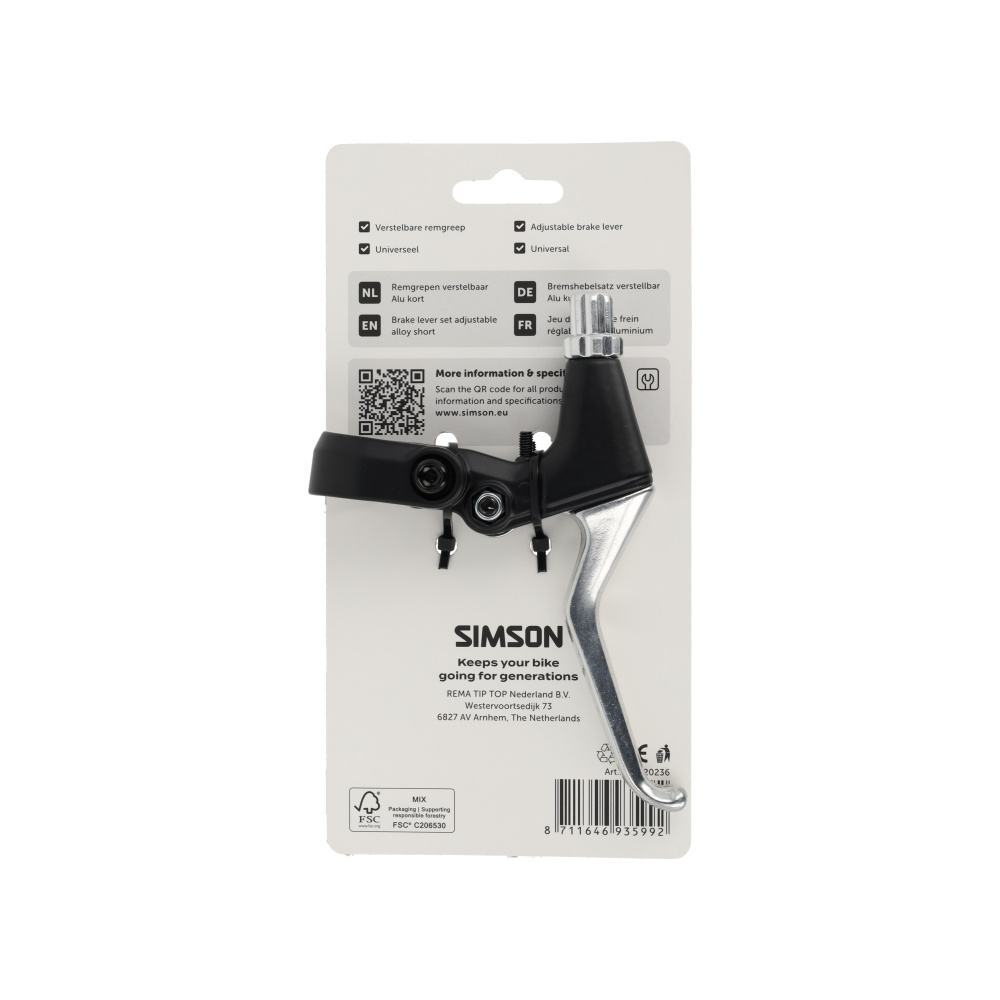 Deze zwarte aluminium remhendels hebben een korte greep die eenvoudig met de hele hand te bedienen is. Ze zijn universeel passend en eenvoudig te monteren. Met de stelschroef breng je de remkabel precies op de juiste spanning voor een veilige rit.