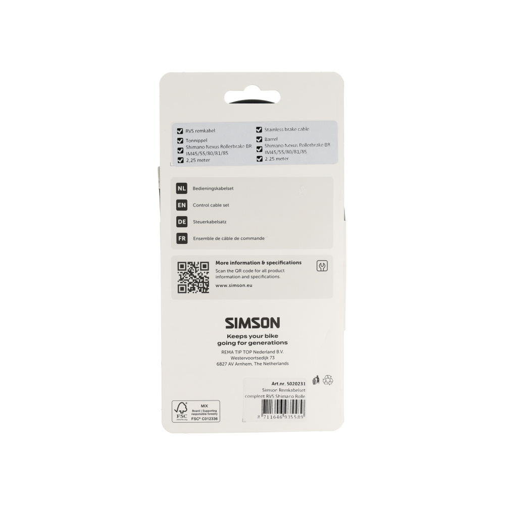 Speciaal voor Shimano Nexus Rollerbrake systemen biedt deze set maximale betrouwbaarheid. De roestvrijstalen (RVS) binnenkabel van 2.25 meter rekt minder snel, waardoor je remmen altijd direct reageren. De zwarte buitenkabel geeft je fiets een verzorgde uitstraling.