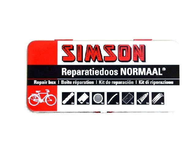 De enige echte originele Simson Reparatiedoos Normaal. Deze reparatiedoos is handig voor het repareren van vrijwel iedere traditionele fietsband zowel thuis als onderweg. Volg bij het plakken van de band de bijgeleverde instructies.