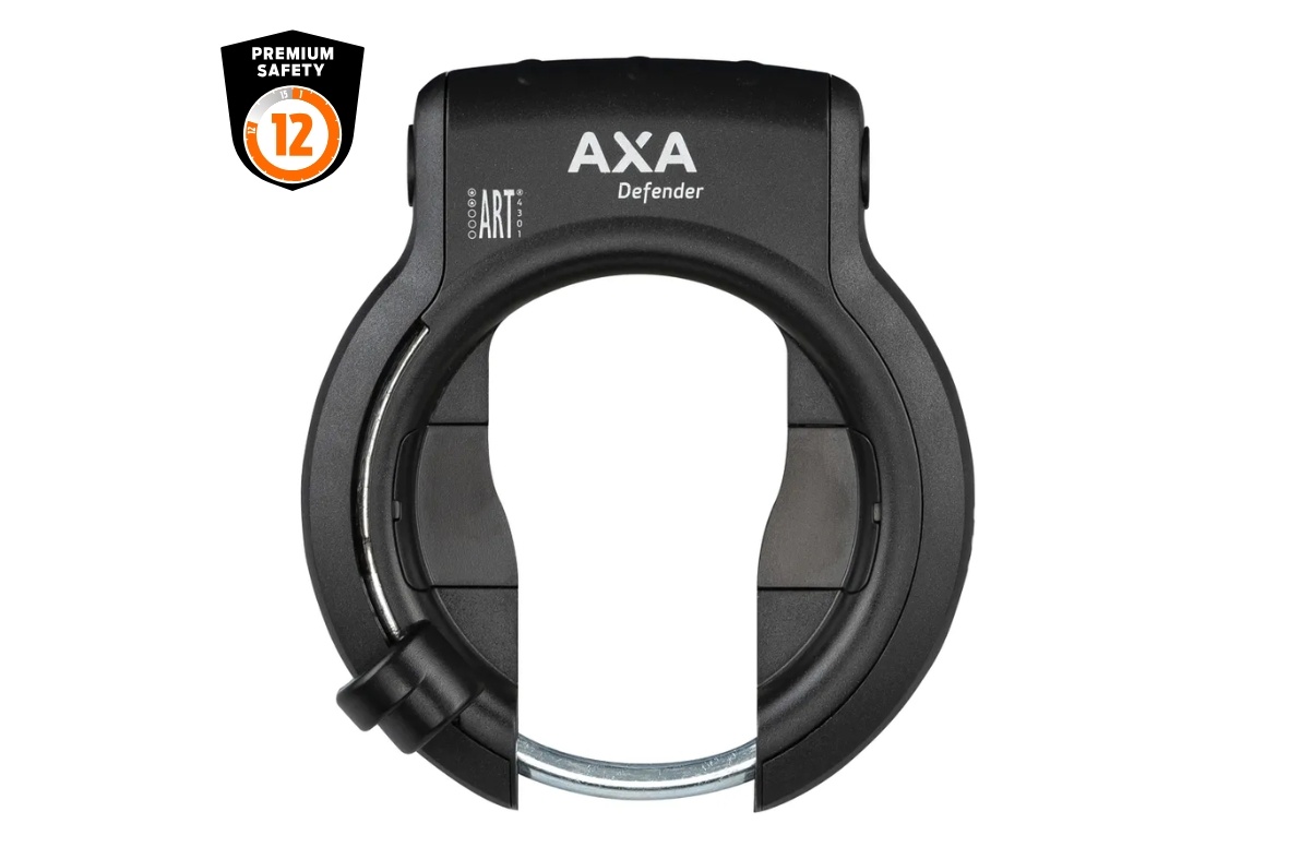 Modern symmetrisch vormgegeven veiligheidsringslot binnen de AXA Defence Line. ART**-goedgekeurd. Met insteekmogelijkheid voor RL-kabel of RL-ketting. Varefakta, SBSC-goedgekeurd slot. Beugelgreep aan de voorzijde.Extra
