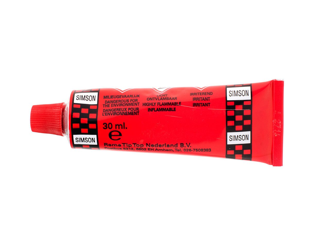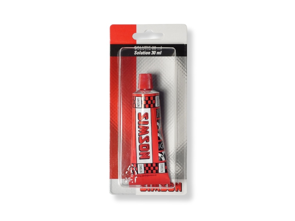 De enige echte Simson Solutie in een knijptube van 30 ml. Onmisbaar tijdens het plakken van een lekke fietsband. De solutie is geschikt voor het koud vulkaniseren van bandenpleisters. Breng de solutie aan op de band en door zijn unieke sneldrogende formule kan de band al na 5 minuten geplakt worden.