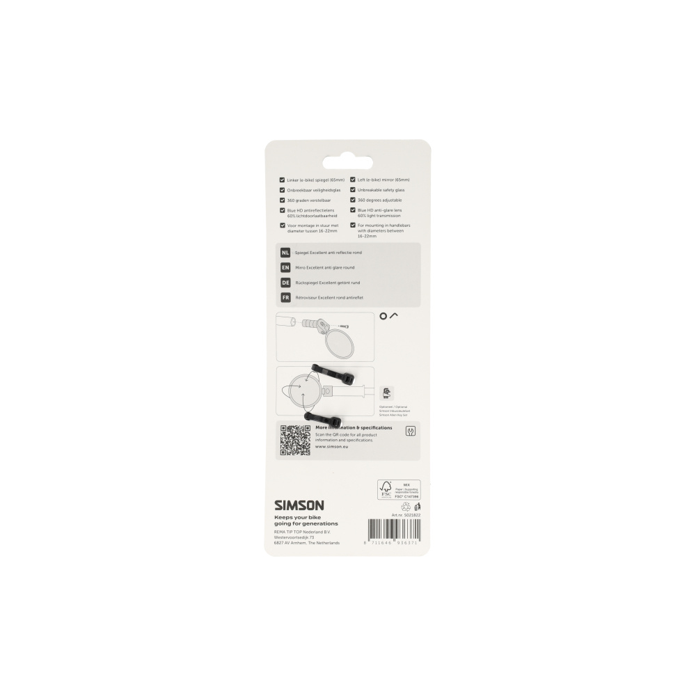 Simson, Spiegel, Simson, excellent, rond, anti, reflectie, niet, verblindend,