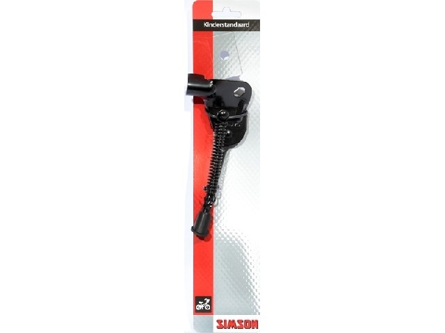 De Simson kinderstandaard is geschikt voor de meeste 12 inch kinderfietsen en kindersteppen. De kunststof voet zorgt voor extra stabiliteit van de fiets als deze op de standaard staat. De standaard heeft een zwarte kleur en is voorzien van een veer waardoor hij eenvoudig in- en uitklapbaar is.