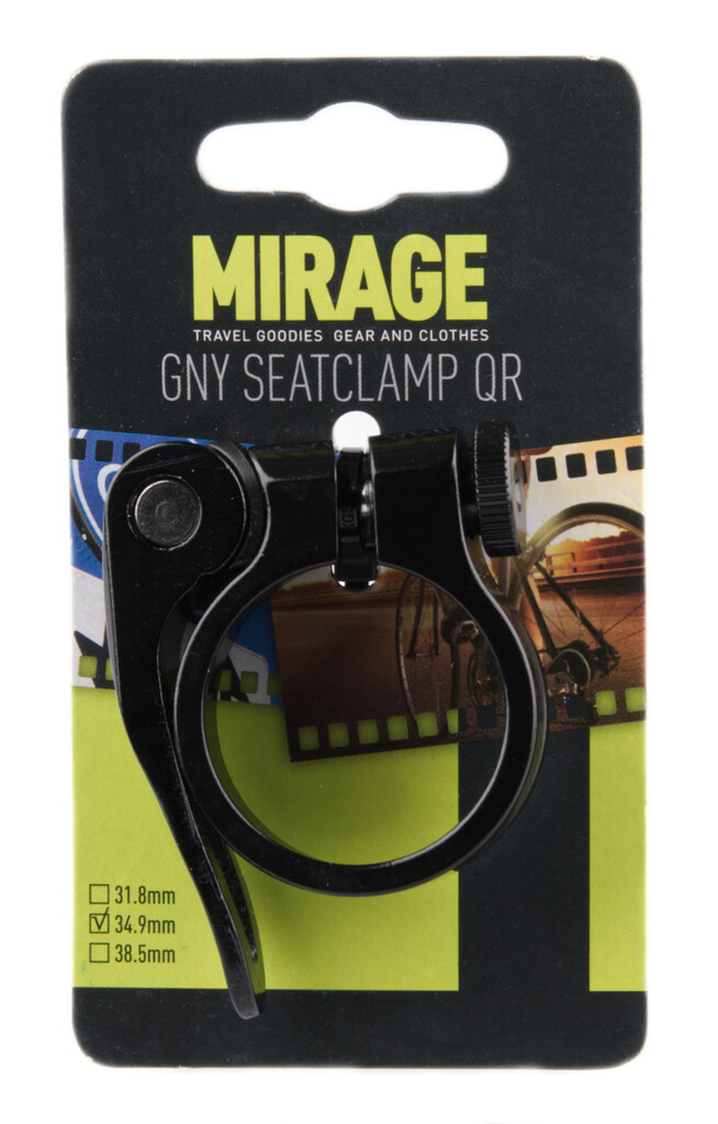 Zadelpenklem, alu, 34.9, zwart, quick, release/snelspanner, Mirage, snelsluiter,
