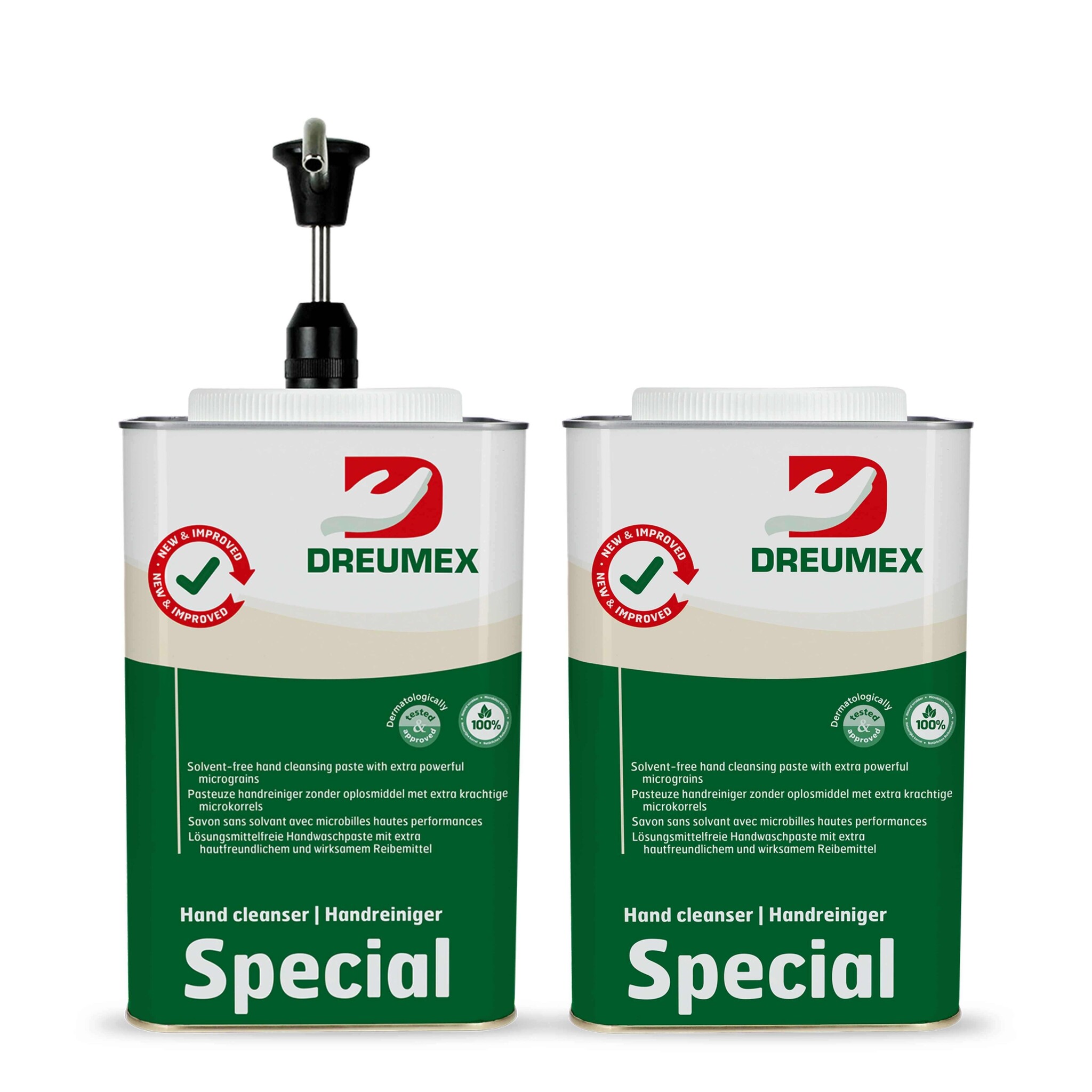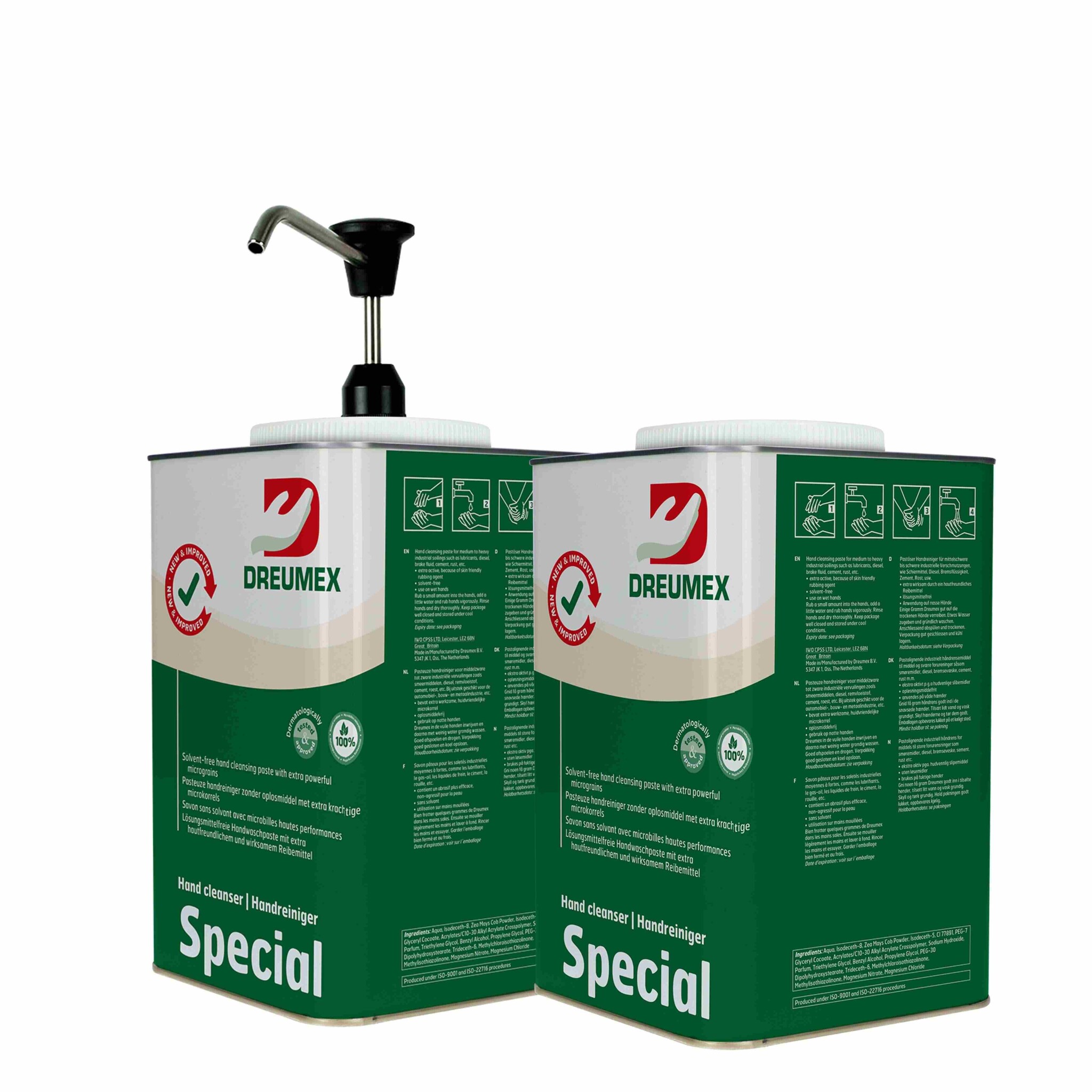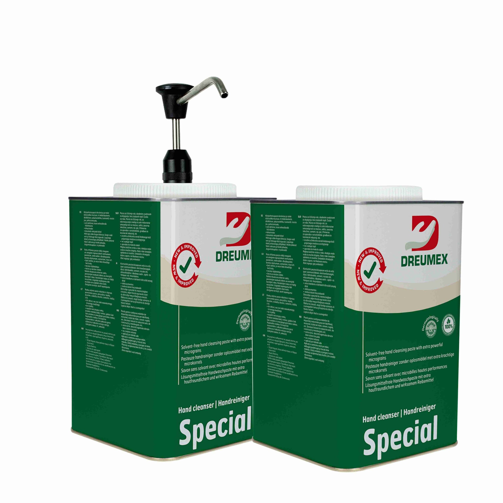 2 blikken Dreumex zeep special 4,2kg. Wordt geleverd inclusief handpomp.