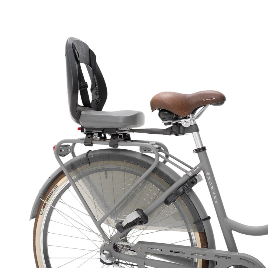 Fietsstoeltje junior met Easyfit-bevestiging voor kinderen van 6-10 jaar (max. 35 kg). Inclusief Thule Yeppie Feet voor extra bescherming van de voeten.